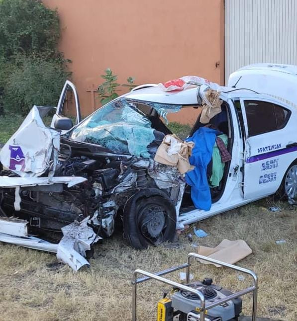 Apatzingán, Mich.- La mañana de este lunes se registró un fatal accidente vehicular sobre la carretera Apatzingán – Aguililla, el que se vieron involucrados dos taxis y una camioneta. A consecuencia del choque en el lugar fallecieron dos masculinos, mientras que en una clínica murió una mujer y hay cuatro heridos hospitalizados.