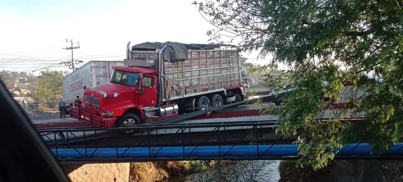 Un camión torton estuvo a punto de caer de un puente del Periférico Paseo de la República hacia el Río Grande, esto durante un accidente en el que al parecer estuvo involucrado un tractocamión, trascendió en la labor noticiosa.