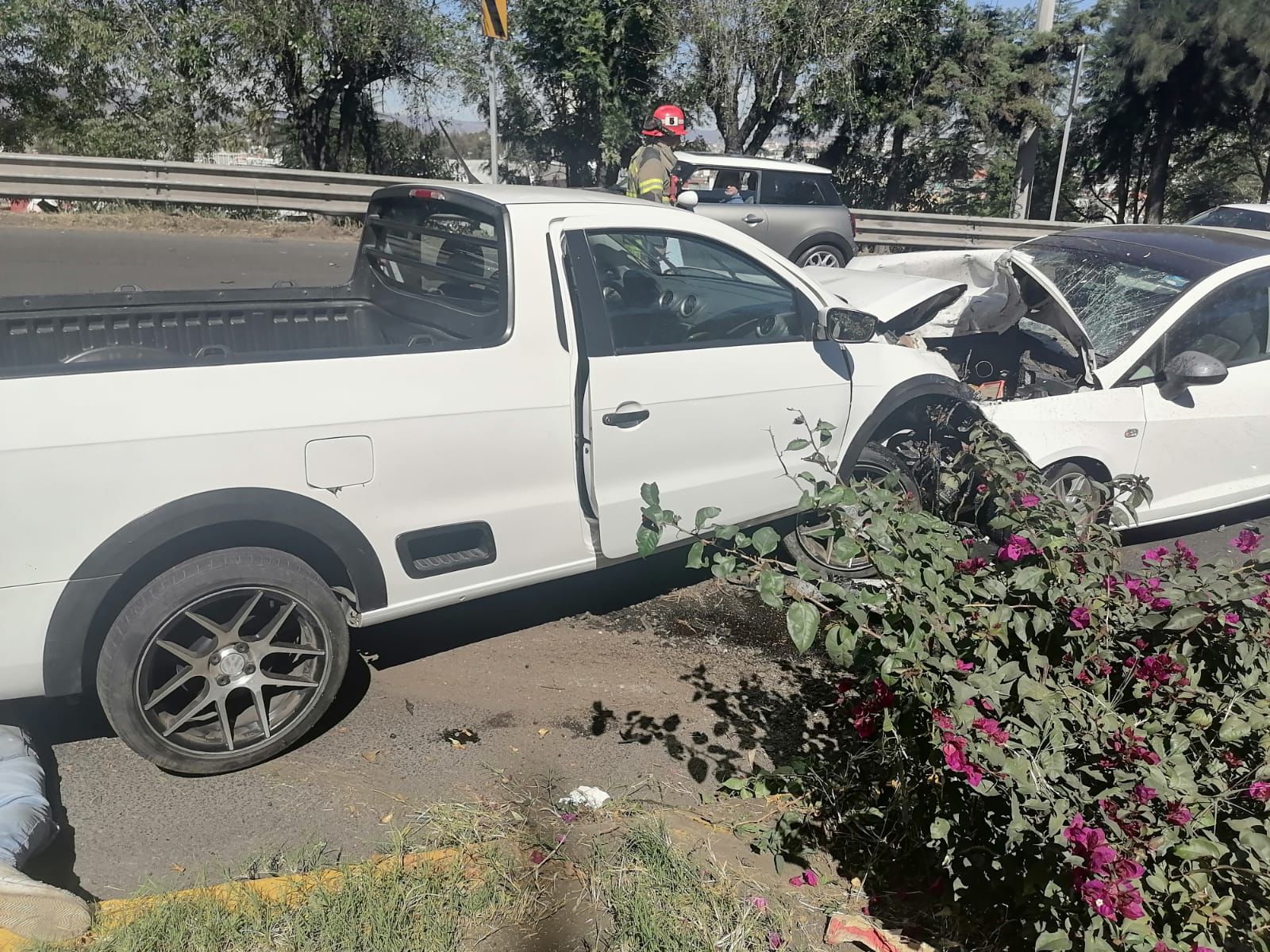 El aparatoso accidente se registró este sábado, a unos metros de casa de gobierno, en el sentido de la Calzada Juárez hacia Fuentes de Morelia, donde una camioneta Volkswagen Saveiro, tipo pick-up de color blanco salto el camellón que divide los carriles de ida y vuelta, embistiendo de frente a un Seat Ibiza de color blanco.
