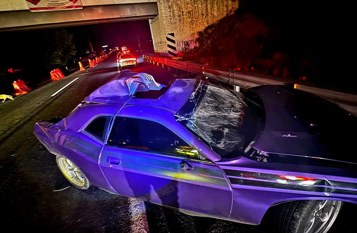 Se apareció que el automotor siniestrado es un Dodge Challenger, color morado, con matrícula UDCD64350.