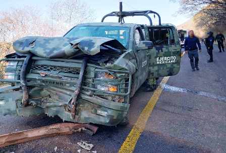 Huetamo, Mich.- La tarde de este sábado, una camioneta de civiles y otra militar chocaron de frente sobre la carretera Huetamo – La Eréndira, dejando como saldo tres soldados heridos.