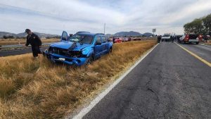 Se apreció que uno de los automotores involucrados es de color verde militar, con matrícula mexiquense NAR3878, el cual quedó destrozado. La otra unidad es una pick up, color azul metálico.
