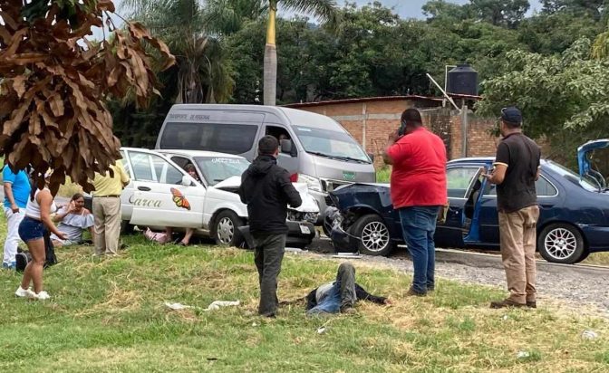 Uruapan, Mich.- Tres mujeres y dos hombres heridos fue el saldo de un choque de frente en el que estuvieron involucrados un taxi de la línea «Monarca» y un vehículo particular sobre la carretera Uruapan – Lombardía, cerca del centro turístico La Tzaráracua.