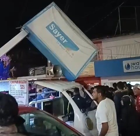 El primer caso tuvo lugar sobre la avenida Michoacán, donde, derivado de los fuertes vientos, un poste metálico que sostenía un letrero colapsó y cayó sobre la retaguardia de un auto rojo que estaba estacionado, además quedó sobre el toldo de una camioneta pequeña. Por fortuna, no hubo personas lesionadas.