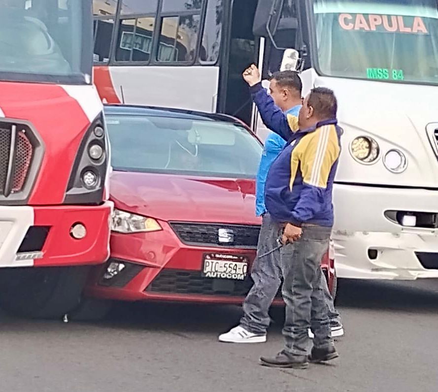 Otro de los incidentes sucedió este jueves en la avenida Madero Poniente, cerca del Obelisco a Lázaro Cárdenas, donde un camión de la Ruta Villa Magna y un auto protagonizaron una colisión lateral.
