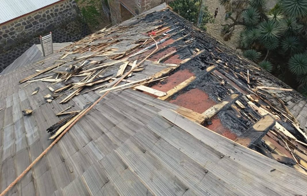 Las llamas consumieron, principalmente, en el tejado a base de tejamanil, en un diámetro de 10 metros cuadrados, según el reporte de Rescate Michoacán.