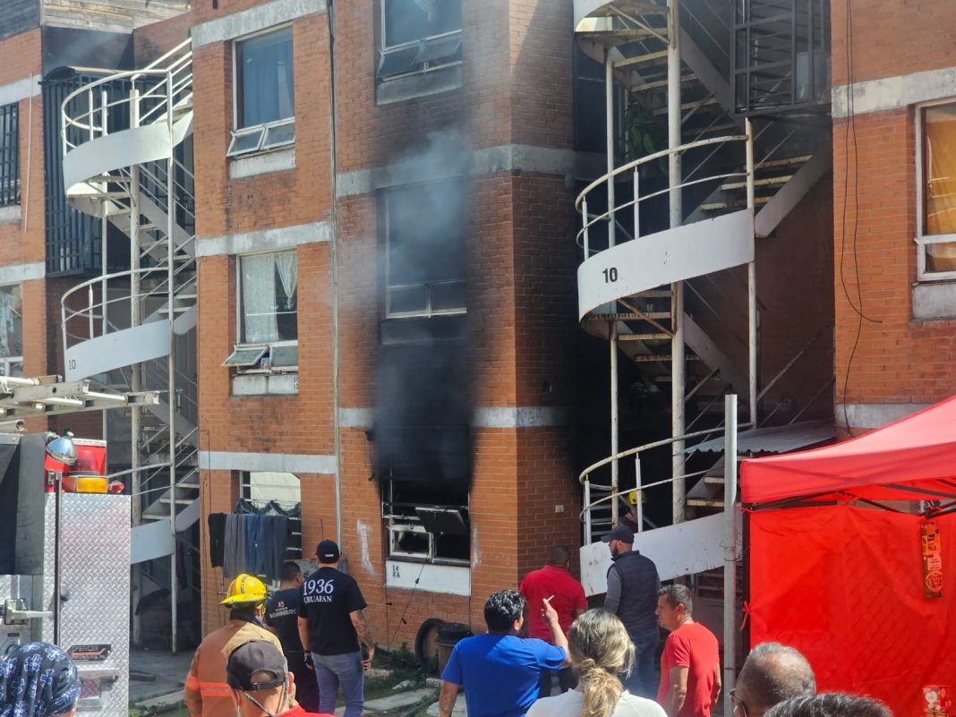 Fue al filo de las 14:00 horas de este lunes, cuando vecinos se percataron de una columna de humo negro y fuego que salía de uno de los edificios, por lo que de inmediato notificaron a los cuerpos de auxilio.