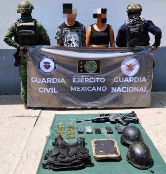Múgica, Mich.- Dos presuntos integrantes de una célula delictiva fueron detenidos en un operativo interinstitucional hecho en el municipio de Múgica, en el que fue asegurada un arma de fuego larga, cargadores, cartuchos, equipo táctico y un vehículo.