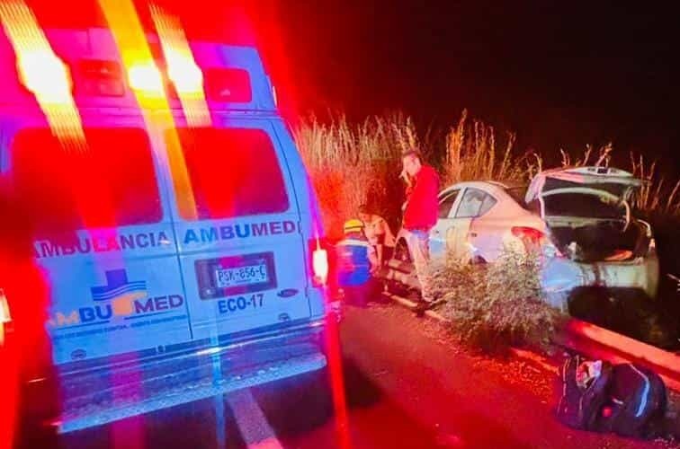 La Unión, Gro.- Una pareja resultó levente herida al sufrir un accidente, en el que su auto se salió de la carpeta asfáltica, mientras circulaban por la autopista Siglo XXI.