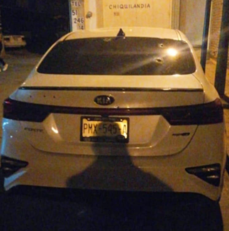 Posteriormente sobre la Avenida 5 de Mayo de la zona Centro, los policías localizaron el automóvil de los afectados, uno de la marca Kia tipo Forte, modelo 2021, de color blanco, con placas PMX-545-A de Michoacán el cual presentaba diversos impactos en los cristales y la carrocería.