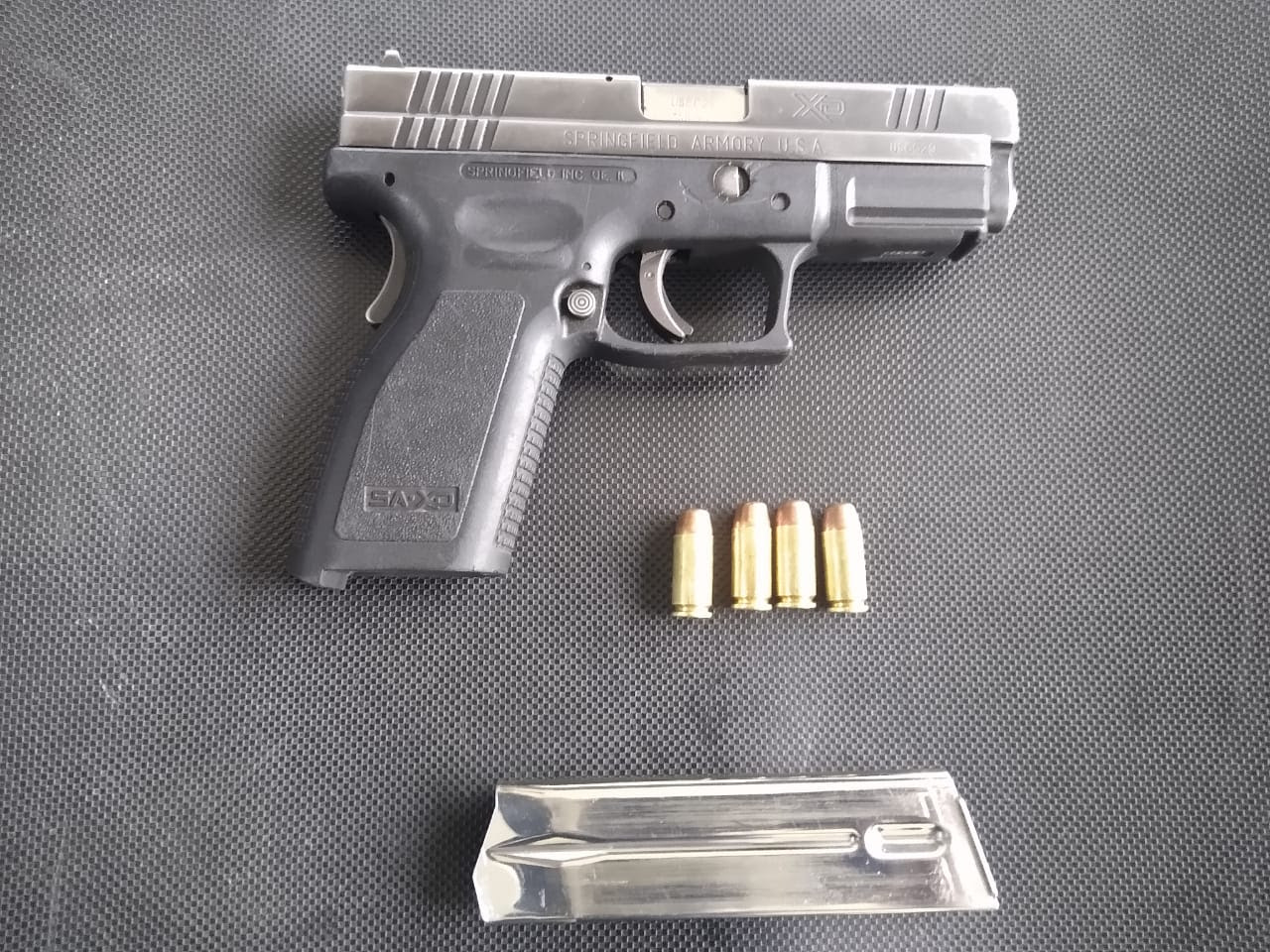 Una vez efectuadas las tareas correspondientes, a los ahora detenidos les fueron encontrados entre sus pertenencias una pistola calibre .40 mm., cuatro cartuchos útiles, así como 11 bolsas plásticas con el citado enervante, por lo que fueron asegurados y puestos a disposición de la autoridad competente a efecto de llevar a cabo las diligencias de Ley.