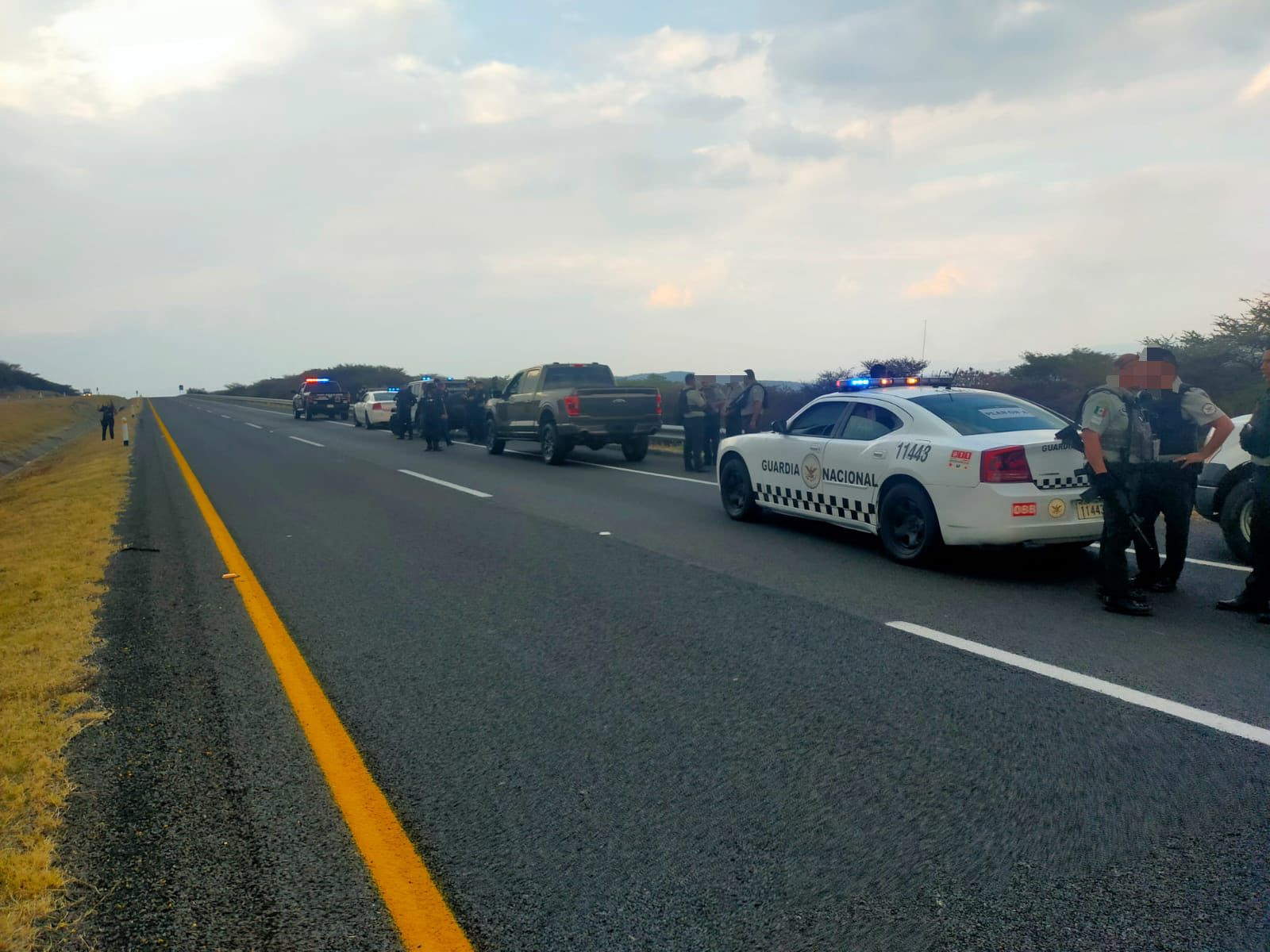 Resultado de esta movilización se logró asegurar el tráiler, articulado con dos remolques en los cuales eran transportadas al menos 5 camionetas; posteriormente se solicitó el apoyo del personal de la Guardia Nacional, mismo que se sumó al dispositivo.