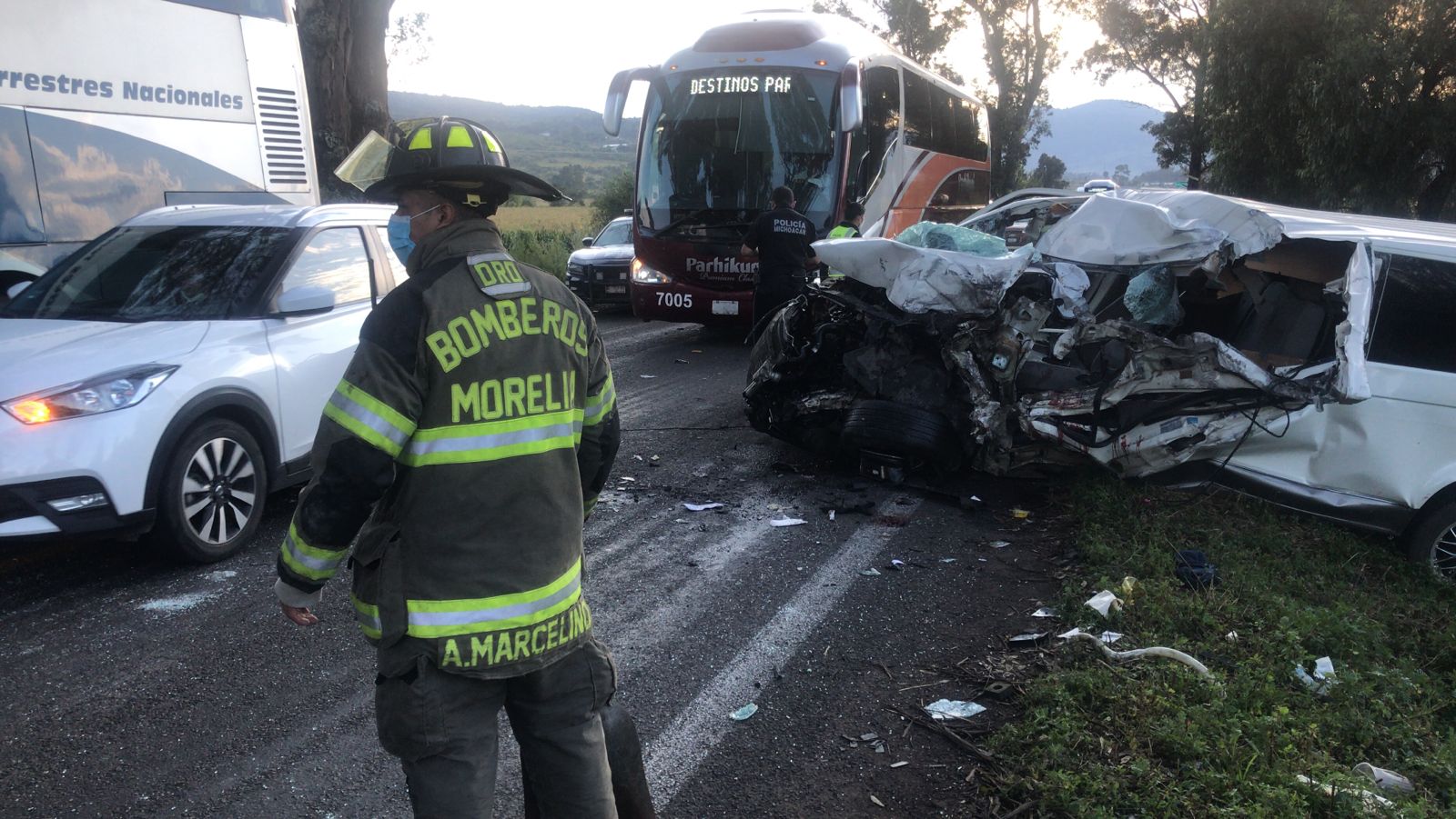 Al lugar se trasladaron los Bomberos de Morelia y paramédicos, a su arribo encontraron un autobús doble piso de la línea ETN, con número económico 6107 y placas de circulación 450JW2, que fue impactado en la parte frontal izquierda por una camioneta Volkswagen tipo Eurovan, de color blanco y matricula PFN714X, misma que terminó destrozada tras el choque.