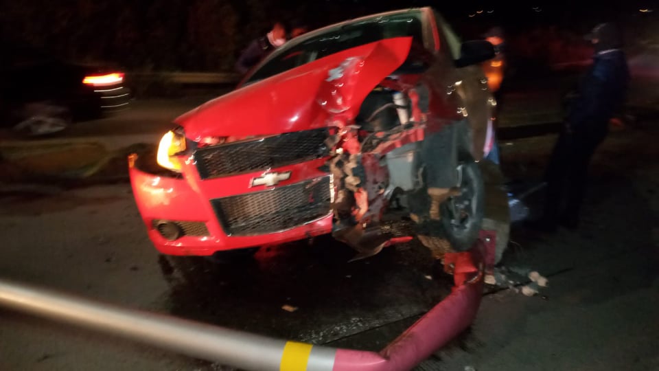 Al llegar al lugar se encontraron un vehículo Chevrolet, Aveo, color rojo el cual se impactó contra un poste de alumbrado público, pero no se encontraron ocupantes del vehículo.