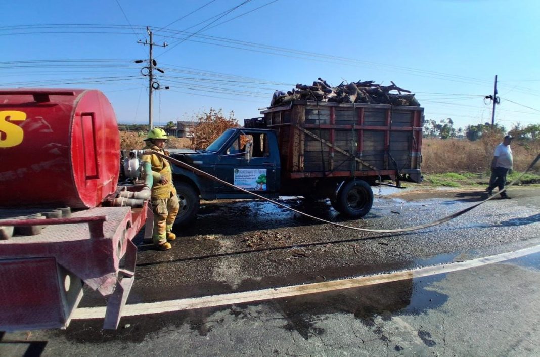 El incidente ocurrió sobre la carretera Cuatro Caminos-Apatzingán, a pocos metros del puente que conduce al fraccionamiento Girasoles. En ese punto, una camioneta Ford de doble rodado, color azul con rojo y con placas GX-1070-C, que transportaba madera, comenzó a desprender una densa columna de humo proveniente de la carga.