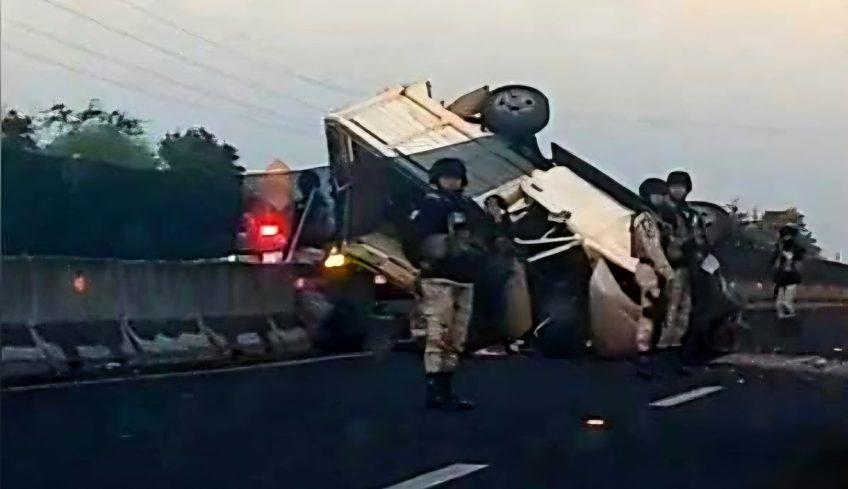 De acuerdo con las autoridades, el percance se registró en las inmediaciones de la comunidad de El Ceñidor, perteneciente al municipio de Múgica, donde una camioneta tipo pickup de color blanco colisionó contra el muro de contención central y volcó.