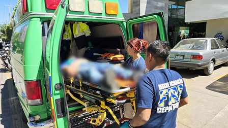 Paramédicos de Rescate llegaron momentos después y le brindaron los primeros auxilios a Celso B., R., de 38 años de edad, quien fue llevado a un nosocomio privado para su adecuada atención médica.