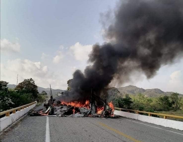 Aquila, Mich.- Un grupo armado quemó al menos dos automotores para bloquear la entrada a la población de Maruata, sobre la carretera Lázaro Cárdenas – Manzanillo.