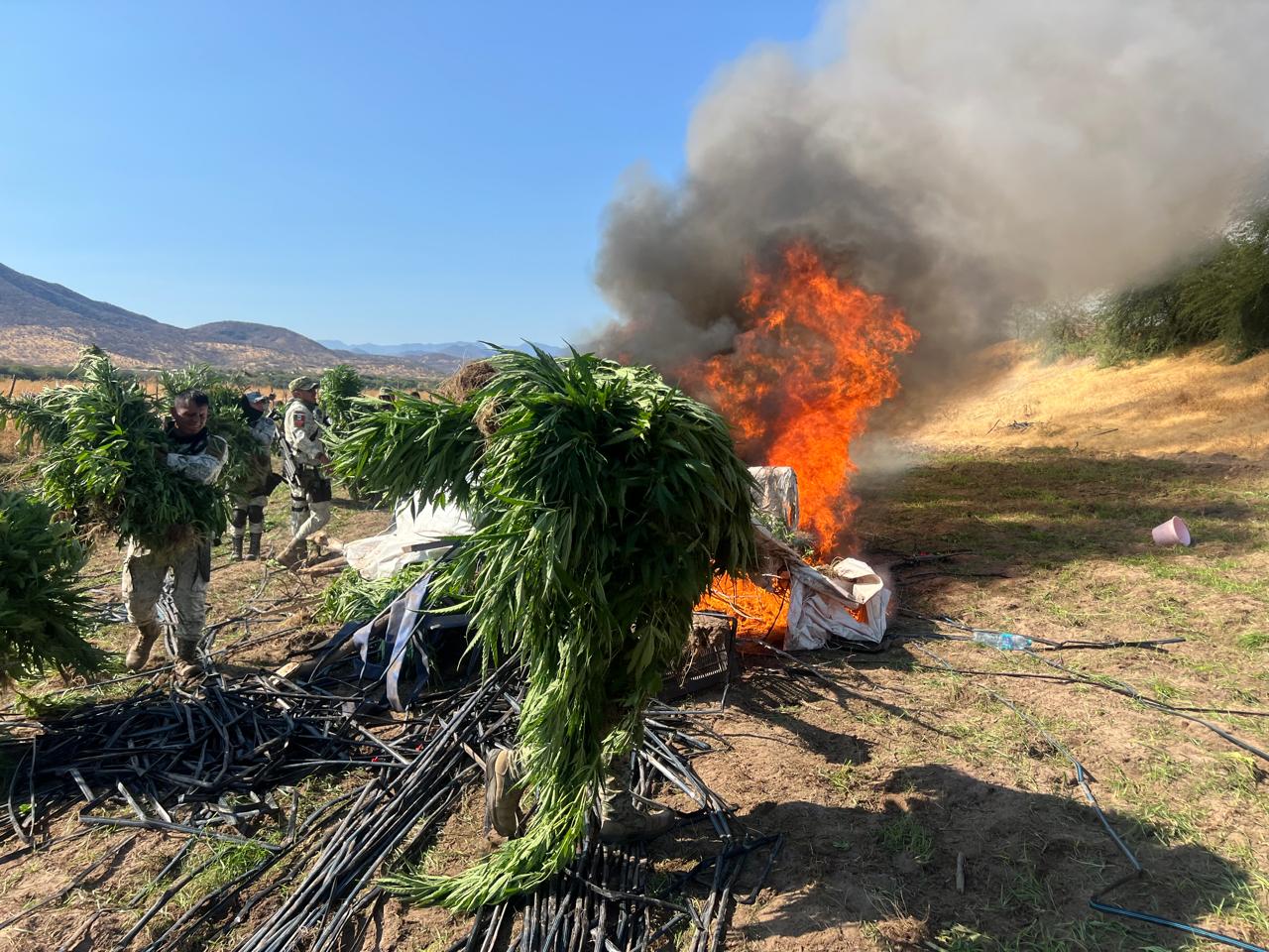 Las Comandancias de la XII Región Militar y 21 /a. Zona Militar, hacen del conocimiento a la opinión pública que, en el marco del «Plan Michoacán por la paz y la justicia» y la implementación del plan de Operaciones «Paricutín», el 25 de diciembre 2025, integrantes de la Guardia Nacional y del Ejército Mexicano al efectuar patrullajes de vigilancia y reconocimiento a inmediaciones de la localidad La Quetzeria, en el municipio de Huetamo, Mich., localizaron y destruyeron un plantío de marihuana, el cual contaba con más de 12,000 plantas en una superficie de 3,000 metros cuadrados.