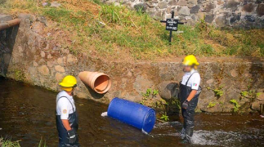 El macabro hallazgo se registró la tarde de este sábado, cuando algunos vecinos observaron lo que parecía un cuerpo humano en un tambo, en el río Santa Bárbara, a la altura del Camino Real a Santa Catarina, por lo que notificaron al número de emergencias.