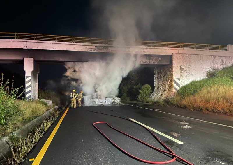 Un grupo de estudiantes normalistas atravesó un vehículo y le prendió fuego sobre la carretera Morelia-Pátzcuaro, a la altura de la Tenencia de Tiripetío, municipio de Morelia, informaron autoridades policiales.