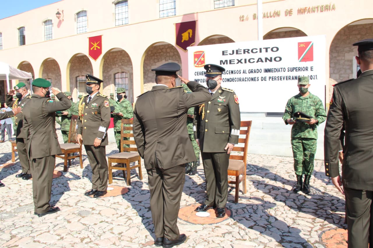 Es así como la Secretaría de la Defensa Nacional reconoce los méritos y trayectoria honorable de los miembros del Ejército Mexicano, haciendo un exhorto a seguir cumpliendo con disciplina y lealtad, las responsabilidades de una nueva jerarquía, en servicio de la nación.