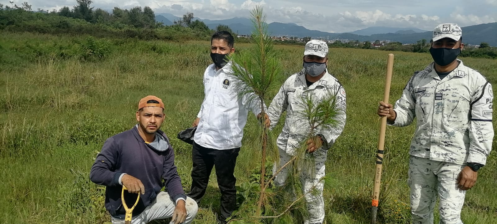 La reforestación se llevó a cabo con pinos donados por la comunidad indígena Barrio de San Francisco Uruapan y contó con la participación de Gerardo Andrés Herrera Pérez, especialista en Ecoeducación y titular del Consejo Estatal para Prevenir y Eliminar la Discriminación y la Violencia (COEPREDV), así como de una escuadra de la Guardia Nacional a cargo del Sargento José Francisco López.
