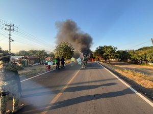 En el sitio los manifestantes atravesaron diversos objetos para entorpecer el tránsito y quemaron llantas, para exigir la intervención de las autoridades ante la desaparición forzada de varias personas, a manos supuestamente de la policía de Tepalcatepec.