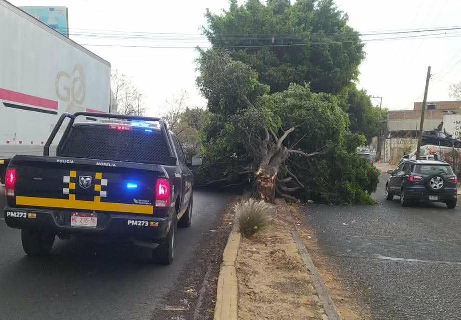 Al menos cuatro árboles colapsaron en distintos puntos de Morelia debido a los fuertes vientos que se registraron durante la tarde de este jueves en algunas zonas. Afortunadamente, no hubo personas lesionadas ni vehículos dañados, informaron fuentes policiales y de rescate.