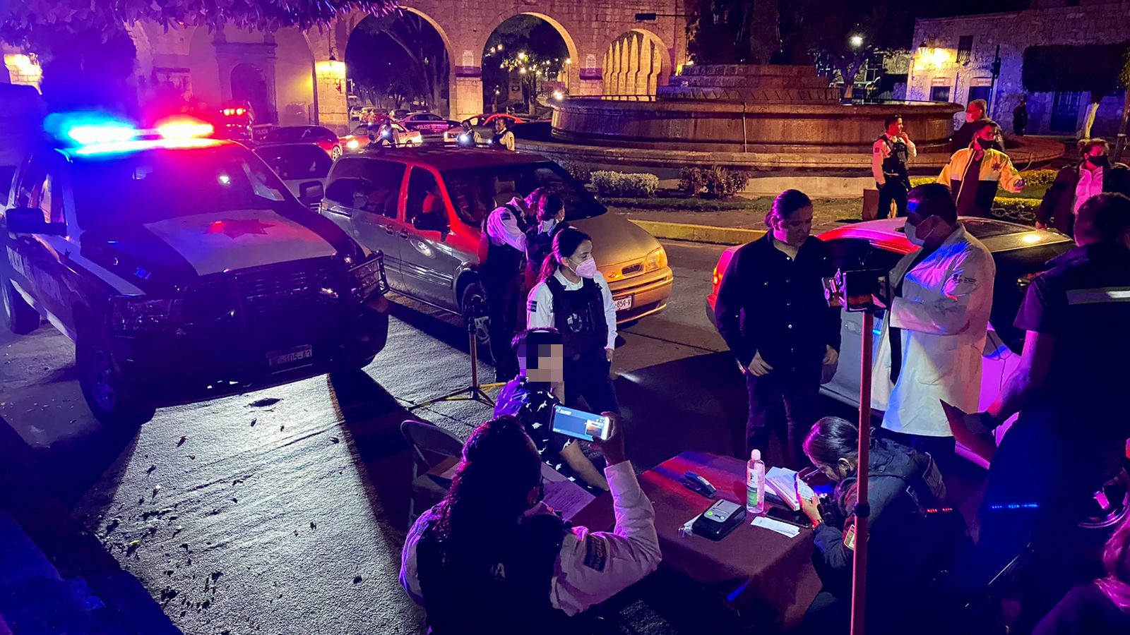 Las acciones preventivas se llevaron a cabo en la avenida Francisco I. Madero a la altura de la fuente de Las Tarascas, lugar donde se instaló el punto de inspección, donde se aplicaron 16 pruebas de alcoholemia.