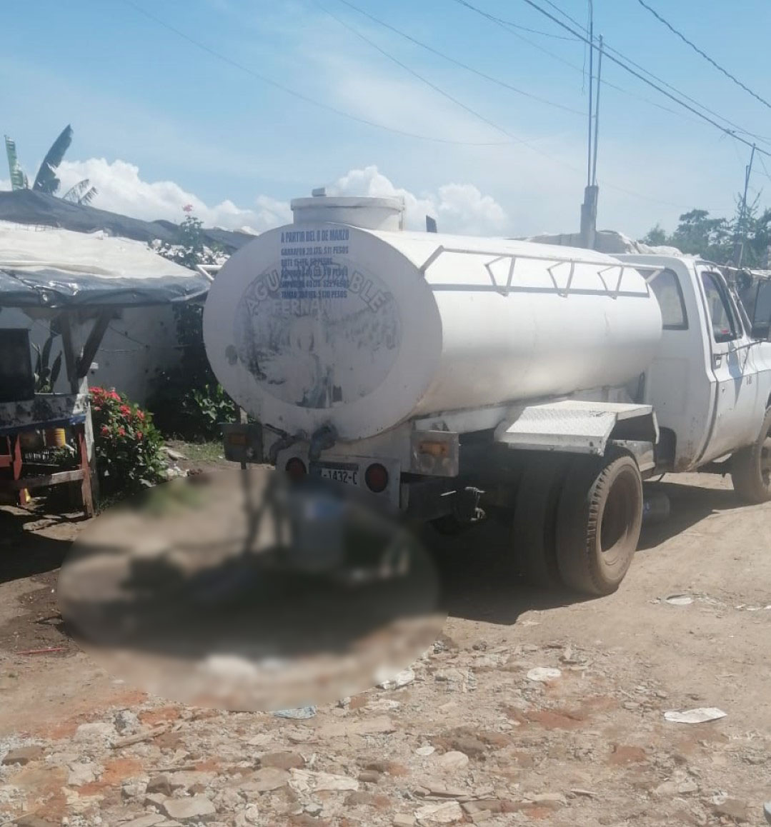 El cadáver quedó tirado debajo de la parte trasera de una pipa la marca Chevrolet, de color blanco, con matricula MV-1432, unidad que fue asegurada por las autoridades para dar seguimiento a las averiguaciones.