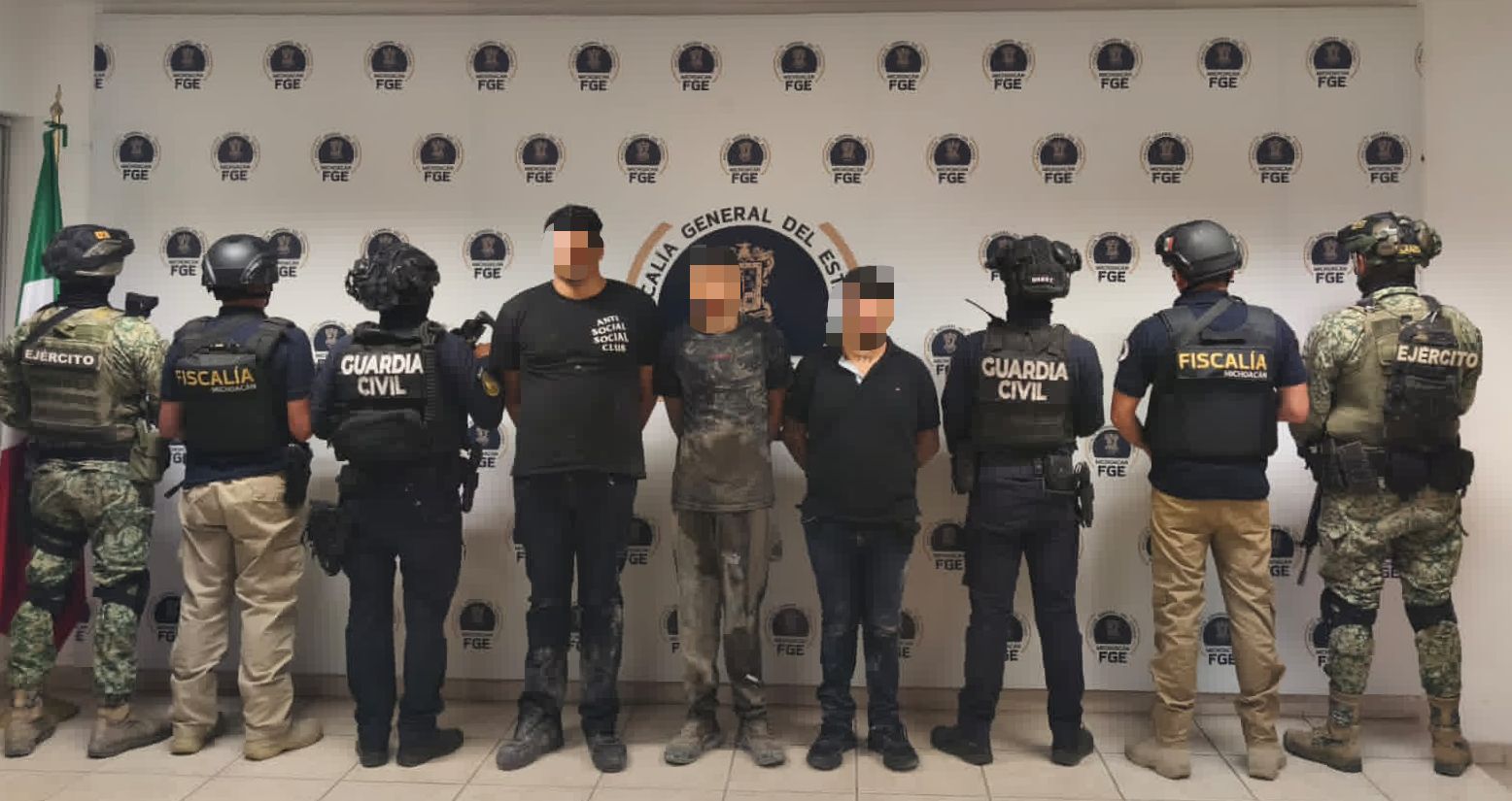Chucándiro, Mich.- Como resultado de un operativo interinstitucional coordinado entre las secretarías de Seguridad Pública (SSP), de la Defensa Nacional (Defensa), la Fiscalía General del Estado (FGE) y la Guardia Nacional (GN), fueron rescatadas dos víctimas de secuestro y asegurados tres presuntos implicados en el hecho en Chucándiro.