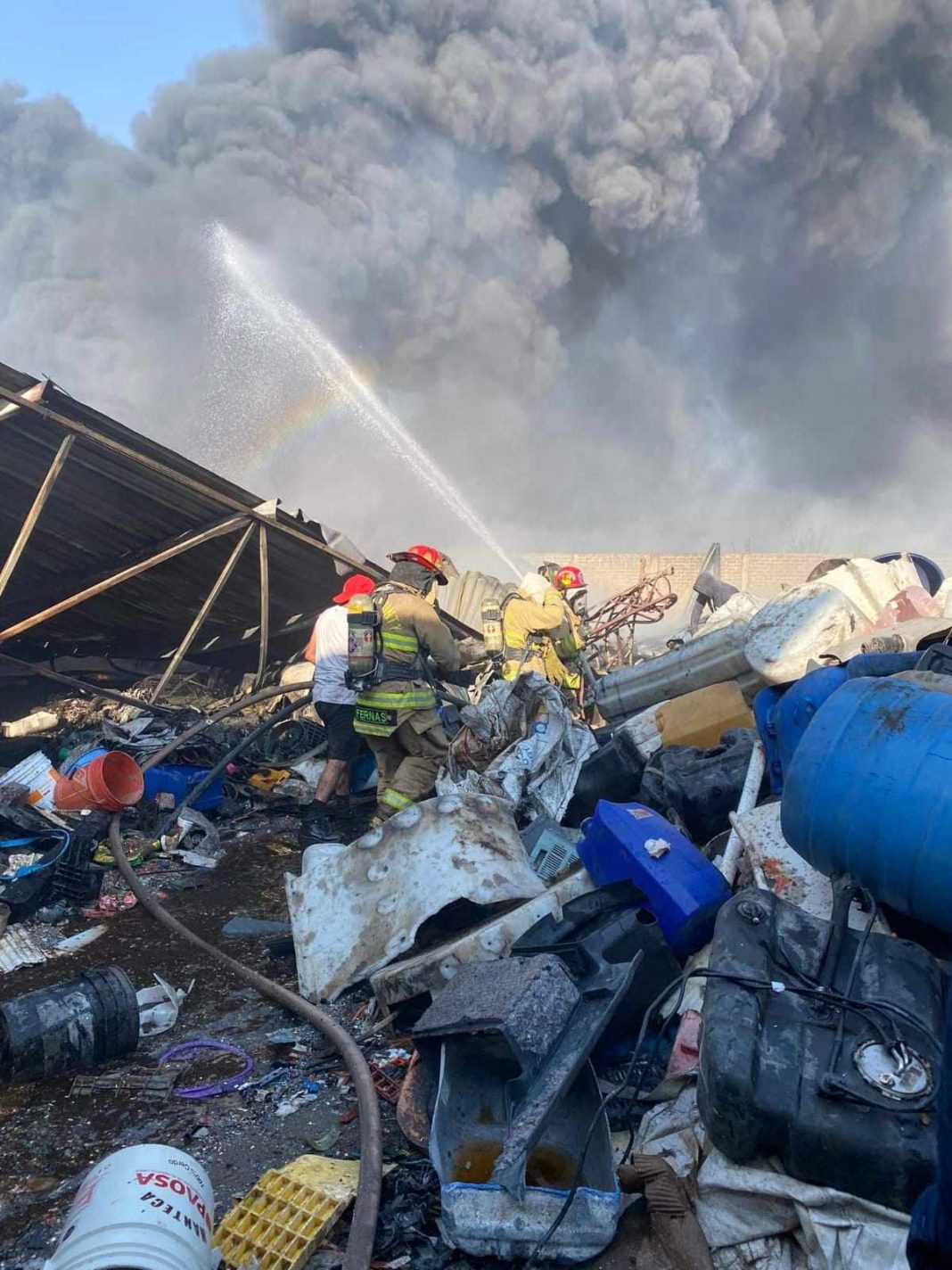 Para atender la emergencia al sitio se trasladaron los bomberos y personal de Emergencia Radio Auxilio Voluntario A.C., para combatir el fuego, que consumía una gran cantidad de materiales reciclables.