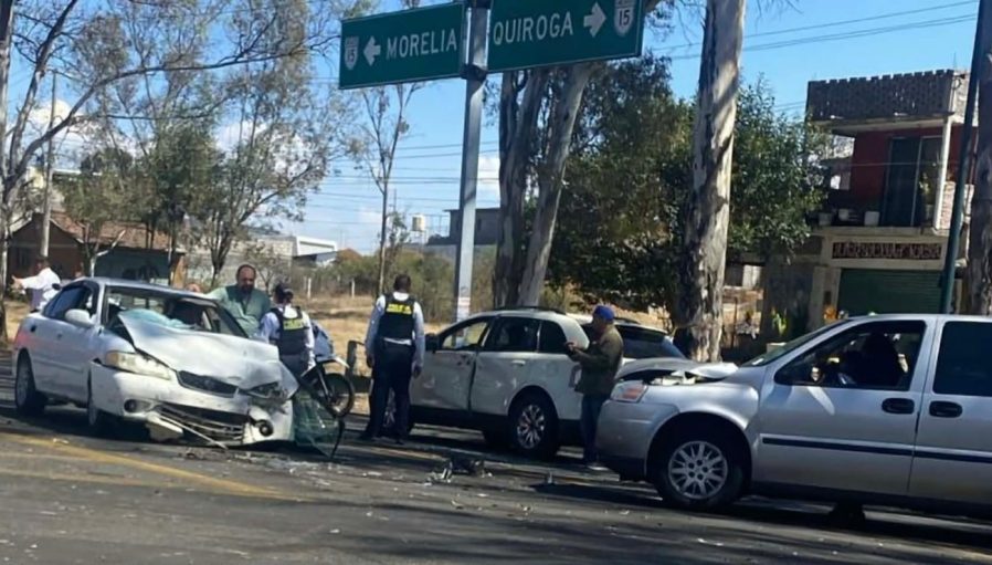 Al menos tres vehículos protagonizaron un choque sobre la carretera Morelia-Quiroga, a la altura de la entrada a la Tenencia de Capula, en el municipio de Morelia, informaron autoridades policiales y de rescate.