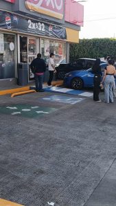 Asimismo, un auto tuvo una falla mecánica y se estrelló contra una tienda Oxxo ubicada en la colonia Manantiales, a la orilla del Circuito la Mintzita. Un ventanal del citado comercio terminó destrozado.