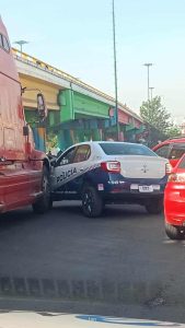 Después sucedido una colisión entre un tráiler y una patrulla de la Policía Auxiliar sobre la lateral de la avenida Madero Oriente, en el sentido de Ciudad Industrial hacia Las Tarascas, a pocos metros de la rotonda del Distribuidor Vial Salida a Charo.