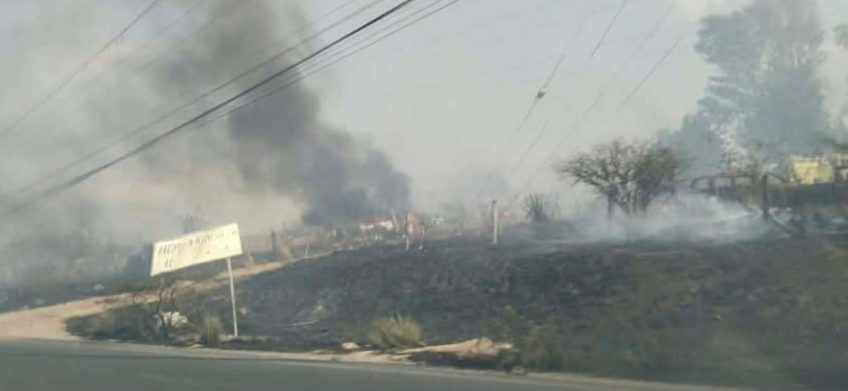 La lumbre arrasó rápidamente con el pasto seco y llegó hasta los restos oxidados e inservibles de algunos automotores. Bomberos acudieron al sitio para sofocar las llamas.