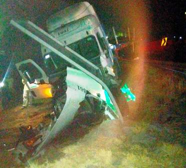 Parácuaro, Mich.- Un tractocamión se volcó y quedó destruido tras salirse de la carpeta asfáltica en la carretera Apatzingán- Cuatro Caminos, a la altura del puente de desnivel ubicado en la tenencia de Úspero, en Parácuaro.