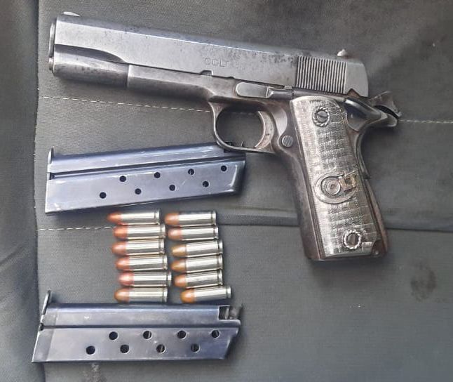 Los oficiales encontraron entres sus pertenencias un arma de fuego tipo corta calibre 38 y dos cargadores útiles, por lo que fue asegurado y puesto a disposición de la autoridad competente para las actuaciones que marca la Ley.