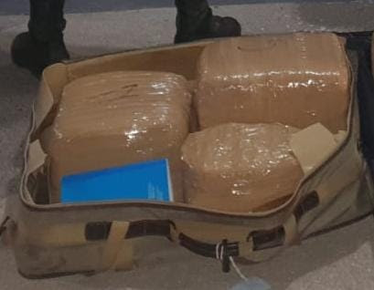 Zitácuaro, Michoacán.- El despliegue de un dispositivo coordinado entre los elementos de las secretarías de Seguridad Pública (SSP), de la Defensa Nacional (SEDENA) y de la Guardia Nacional (GN) permitió el aseguramiento de dos personas en posesión de 3 maletas con más de 55 kilogramos de hierba verde y seca, al parecer marihuana.