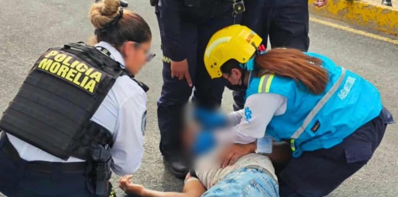 Un hombre quedó gravemente herido tras aventarse de un puente peatonal y caer a los carriles centrales de la Calzada La Huerta, en la ciudad de Morelia, informaron autoridades policiales y de rescate.