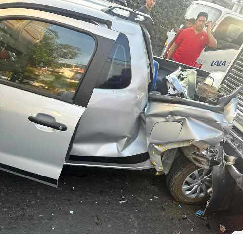 Uruapan, Mich.- Una camioneta fue embestida por un camión tipo torton y proyectada contra otra unidad de carga, sobre la calzada Benito Juárez, a la altura del Barrio de San Juan Quemado, de Uruapan, hay un herido y cuantiosos daños materiales.