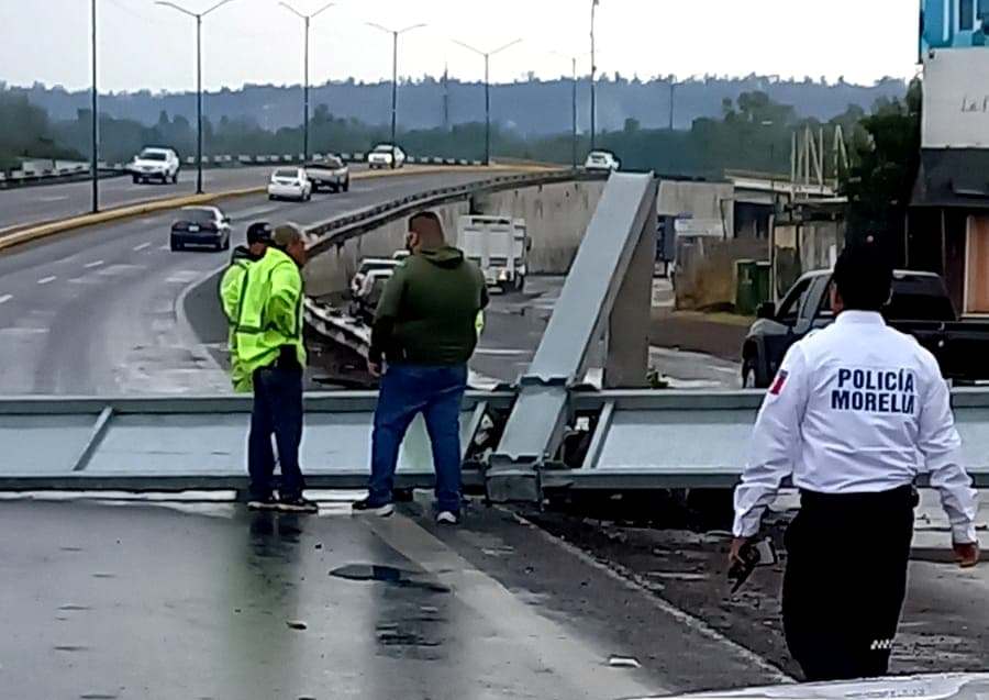 Morelia, Mich.-Un tráiler derribó un letrero vial ubicado en el puente vehicular de la salida a Pátzcuaro de la ciudad de Morelia.