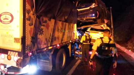 Para atender la emergencia se movilizaron elementos de Auxilio Vial y paramédicos, los cuales encontraron un camión con razón social “Fabrica de Jabón La Corona”, con la cabina destrozada tras impactar con la retaguardia de un tráiler tipo madrina.