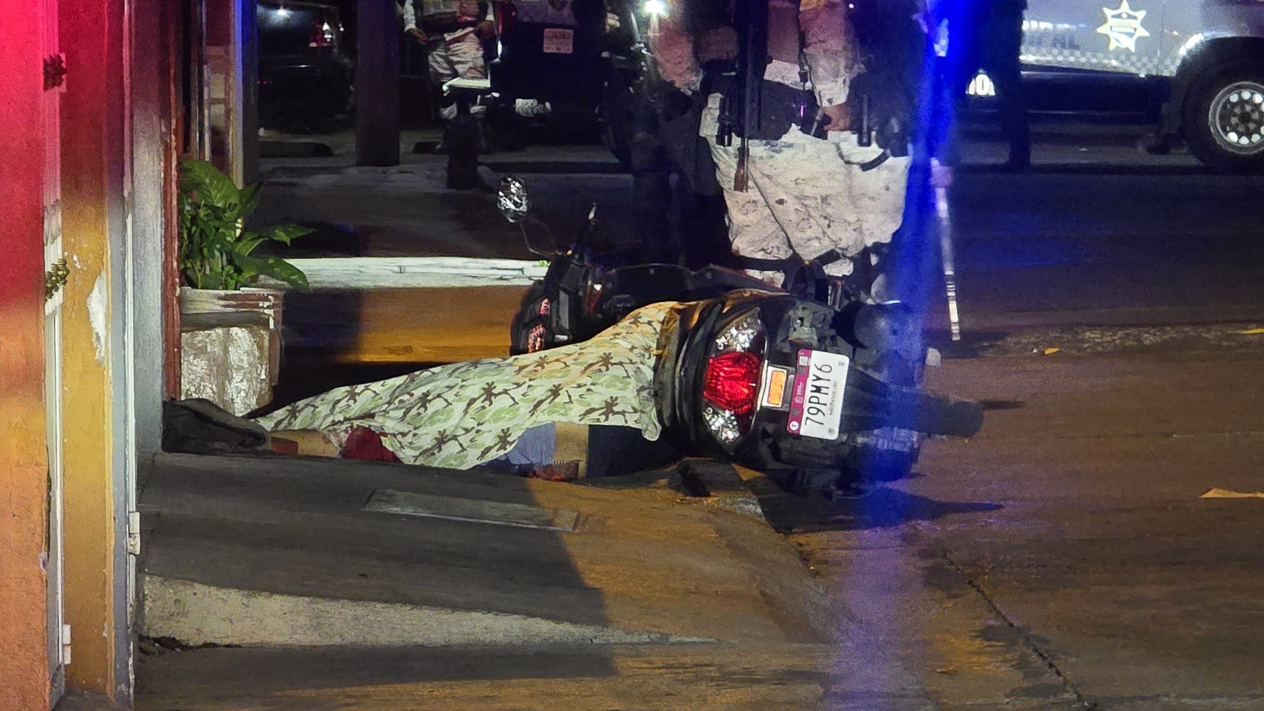 El ofendido tras recibir varios impactos cayó inerte sobre la banqueta y a un costado de su moto una Honda Dio, negra con rojo, con placas de circulación 79PMY6.