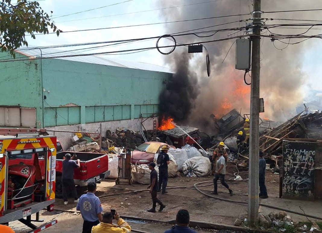 Uruapan, Mich.- Un voraz incendio en un almacén de chatarra registrado en el Fraccionamiento Lomas del Valle Sur de Uruapan, movilizó a elementos policiacos y Bomberos de distintas corporaciones; no se reportaron víctimas.