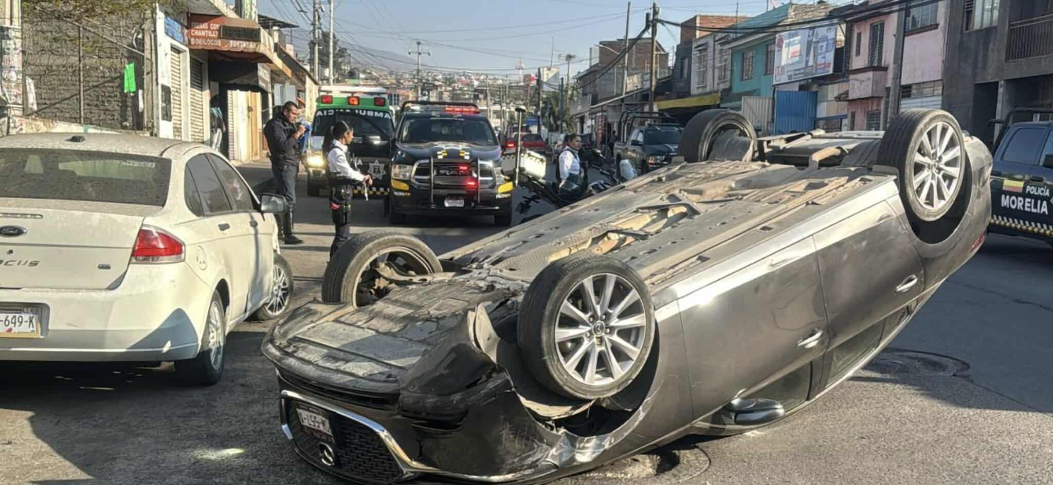 La mañana de este martes se registró la volcadura de un vehículo sobre la avenida San Juanito Itzícuaro, al poniente de la ciudad de Morelia, informaron autoridades policiales, las cuales agregaron que el conductor resultó levemente herido.