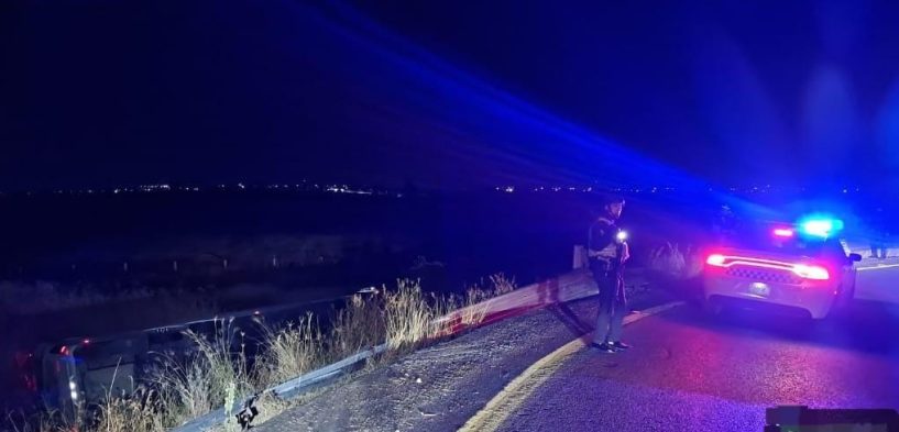La Piedad, Mich.- Un autobús de pasajeros se salió del camino y acabó volcado a un costado del Libramiento Oriente de la ciudad de La Piedad, tras lo cual su conductor resultó con algunos golpes leves.