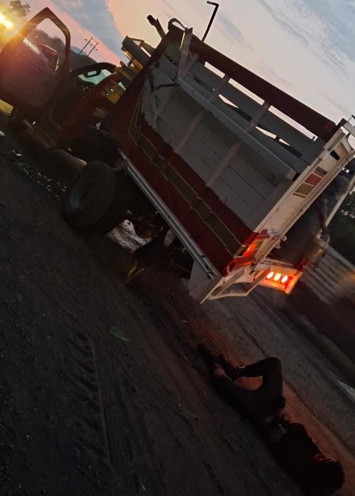 Al respecto se pudo establecer que la mañana de este jueves, una camioneta doble rodado de color rojo con blanco, se dirigía a campos de pepino cuando protagonizó un choque volcadura a la altura del puente de las vías férreas.