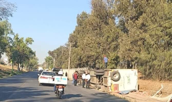 La mañana de este martes volcó un tractocamión con logotipos de la bebida Boing, perteneciente a la empresa Cooperativa Pascual, hecho que sucedió en una de las layerales de la avenida Francisco I. Madero Oriente, en Morelia.